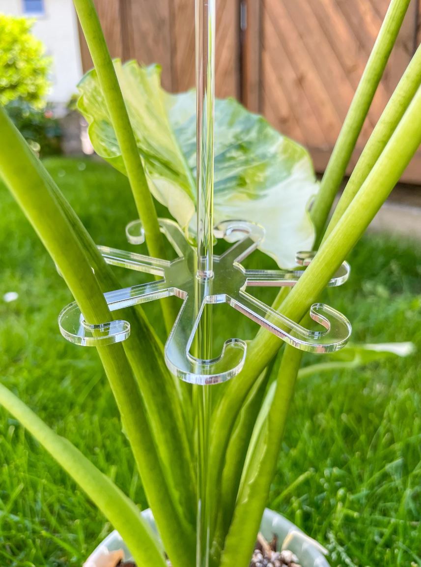 Bitte beachte: Die Haltestange passt möglicherweise nicht exakt in die Öffnung der Hooks. Setze sie deshalb mit etwas Fingerspitzengefühl ein, wie im Beispielbild zu sehen, damit die Pflanze sicher gestützt ist, ohne Schaden zu nehmen.